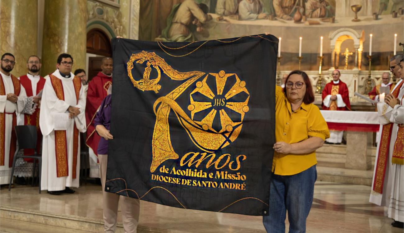 O início da celebração foi marcada pela apresentação do logotipo e hino comemorativo dos 70 anos da Diocese de Santo André, que será celebrado em 22 de julho de 2024, seguindo o lema do 8° Plano Diocesano de Pastoral, “Acolhida e Missão”.