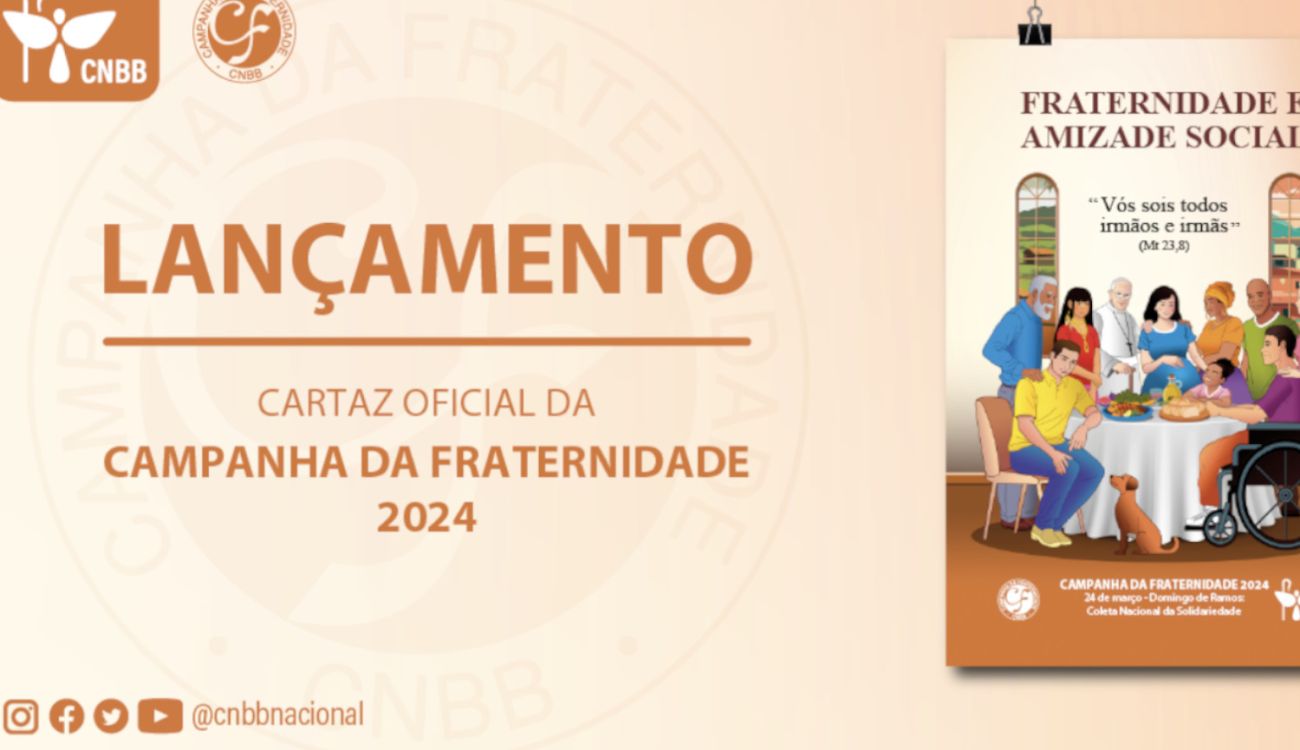 A Conferência Nacional dos Bispos do Brasil (CNBB) lançou nesta terça-feira, 25 de julho, o cartaz e a oração da Campanha da Fraternidade 2024. Inspirada na Encíclica do Papa Francisco, Fratelli Tutti, a Campanha da Fraternidade (CF) de 2024 tem como tema: “Fraternidade e Amizade Social” e o lema: “Vós sois todos irmãos e irmãs” (Mt. 23, 8). Este tema e lema foram escolhidos pelo Conselho Permanente da Conferência Nacional dos Bispos do Brasil (CNBB), em novembro de 2022.