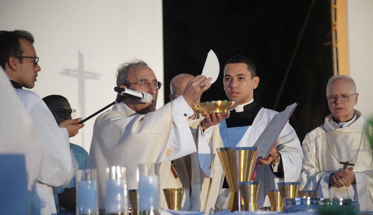 A celebração da Santa Missa abriu, na noite de sexta-feira (11), o 18º Congresso Eucarístico Nacional, na área externa do Centro de Convenções de Pernambuco, em Olinda (PE). Em torno do altar, cerca de 10 mil pessoas participaram da liturgia presidida pelo bispo emérito de Leiria-Fátima, em Portugal, e enviado especial do Papa Francisco, o cardeal Dom António Marto.