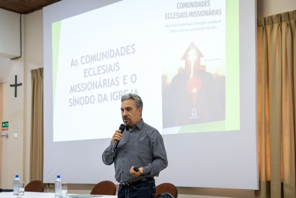 Padre José Carlos Pereira, da Congregação Passionista, foi o assessor do encontro e abordou o tema “Comunidades Eclesiais Missionárias” – o que é e sua implantação, além de apresentar de maneira resumida o processo sinodal que a Igreja está vivenciando.