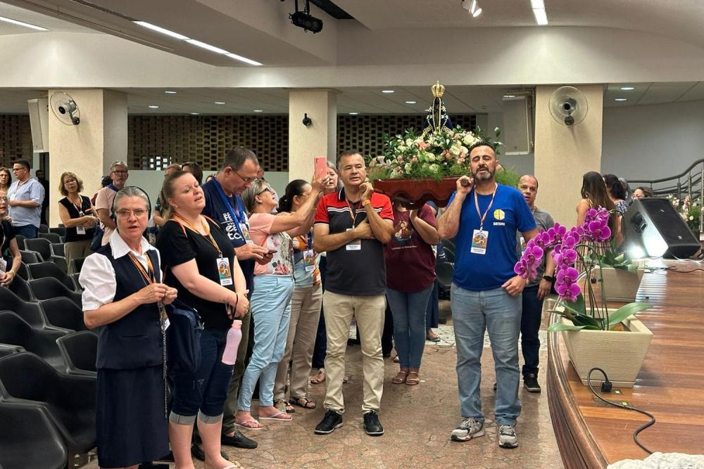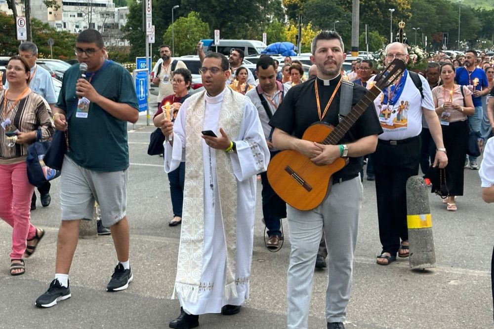 O encontro no sábado terminou com uma procissão luminosa com a Padroeira do Brasil ao redor da Basílica de Aparecida.