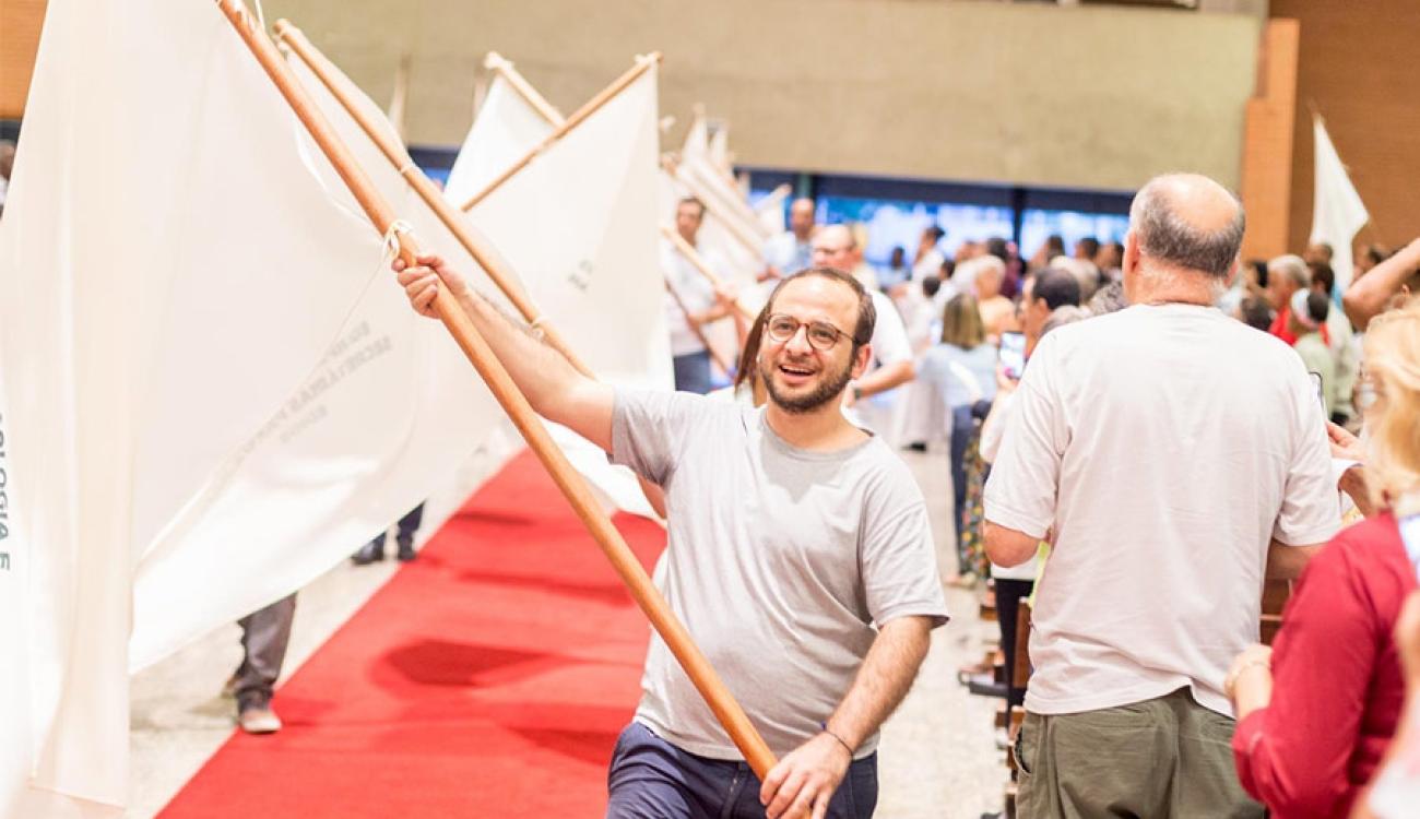 Com a presença de fiéis representando as diversas realidades pastorais e movimentos da Diocese a Catedral Diocesana ficou cheia e um detalhe chamou a atenção de todos: simbolizando a missão dos leigos, cada pastoral, movimento e associação de fiéis entrou com uma bandeira representando o movimento.