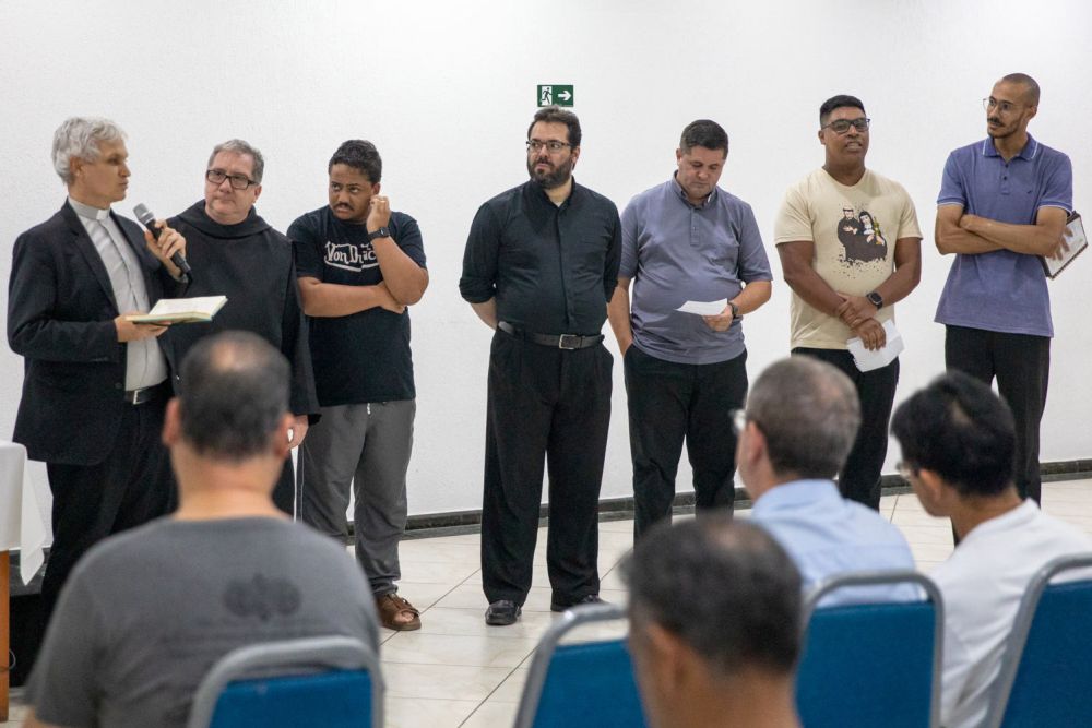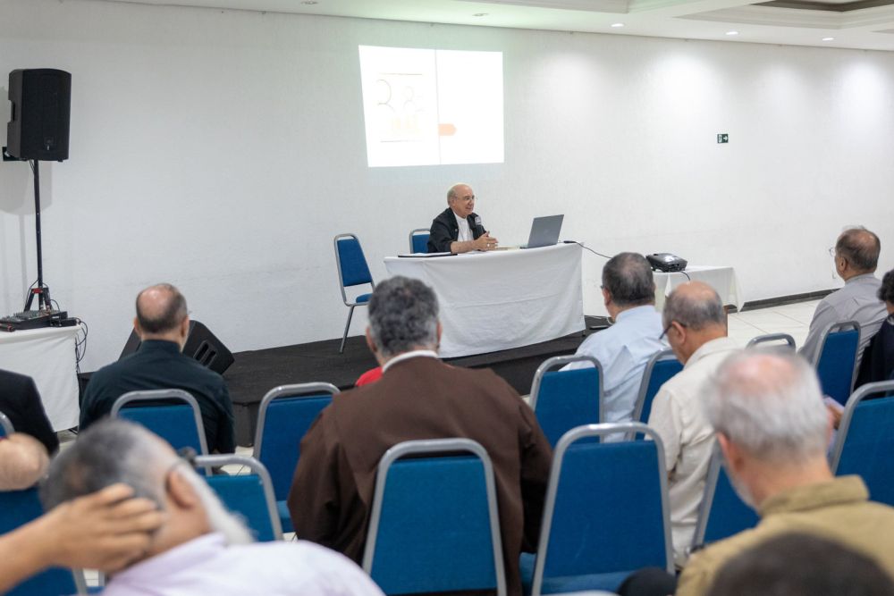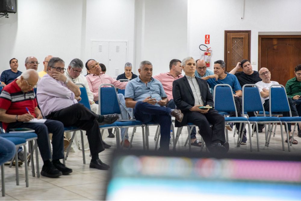 Aplicando esta reflexão teológica à vida sacerdotal, o professor abordou desafios enfrentados pelo clero, como estresse e a dicotomia entre vocação e função.
