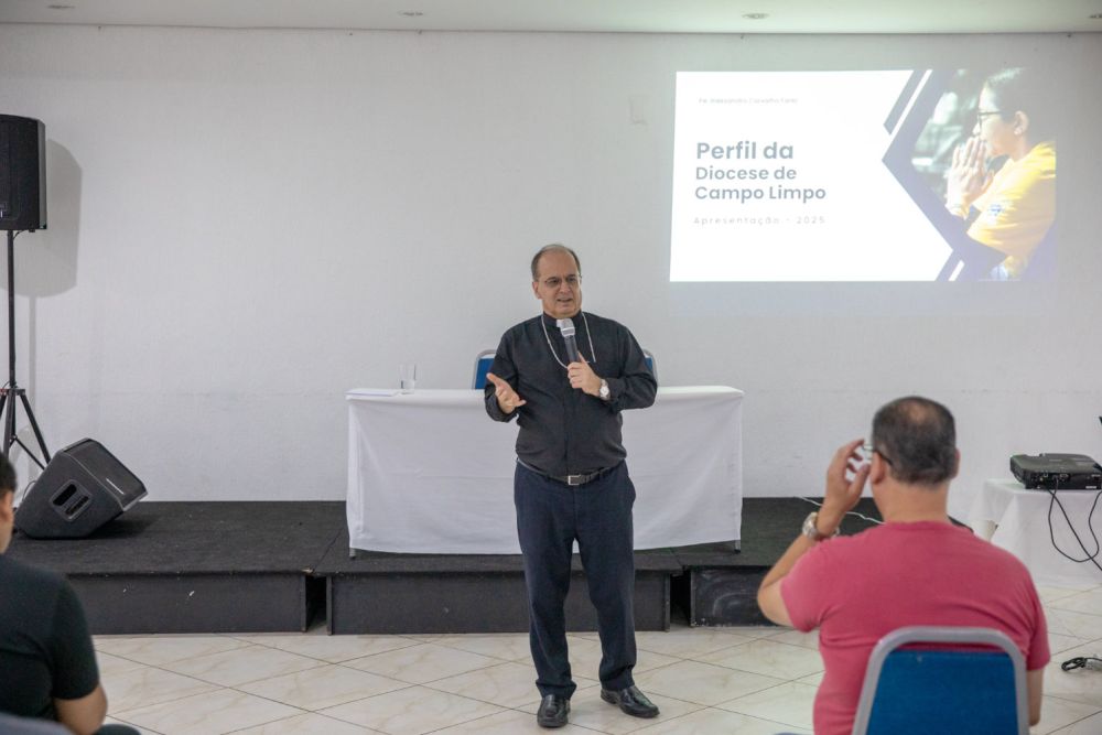 O padre Alessandro de Carvalho Faria, pároco da paróquia São Francisco e Santo Estevão e graduado em Ciências Sociais pela USP (Universidade de São Paulo), apresentou um detalhado estudo sobre a realidade sociodemográfica da Diocese de Campo Limpo, abordando questões fundamentais para auxiliar o planejamento pastoral.