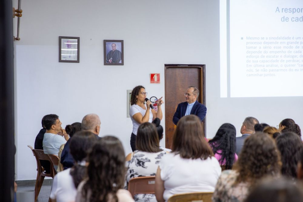 Didático, por inúmeras vezes interagiu com os participantes e de forma leve questionou sobre como ‘estamos nos comunicando’: “O que é necessário para favorecer uma comunicação que nos ajude a caminhar juntos?”, sem perder tempo respondeu que para se comunicar, é preciso haver escuta e diálogo: “Num caminho sinodal fecundo prevalece à atitude de escuta do outro, considerando que este “outro” não é apenas aquele com o qual simpatizo mais ou que pensa exatamente como eu. Da escuta nasce o diálogo que é, justamente, o processo que põe em movimento um caminho de aproximação e que procura unir o que está dividido ou, em outros casos, reforçar os laços positivos já presentes nas relações”.