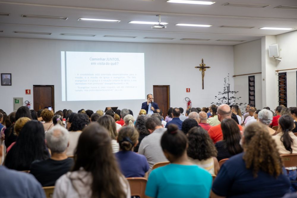 E perguntando a platéia atenta sobre a finalidade de caminhar juntos, usou um trecho da exortação apostólica Evangelii nuntiandi,14, para explicar que a sinodalidade está orientada essencialmente para a missão, e a missão da Igreja é evangelizar. “De fato, evangelizar é a graça e a vocação própria da Igreja, a sua identidade mais profunda”.