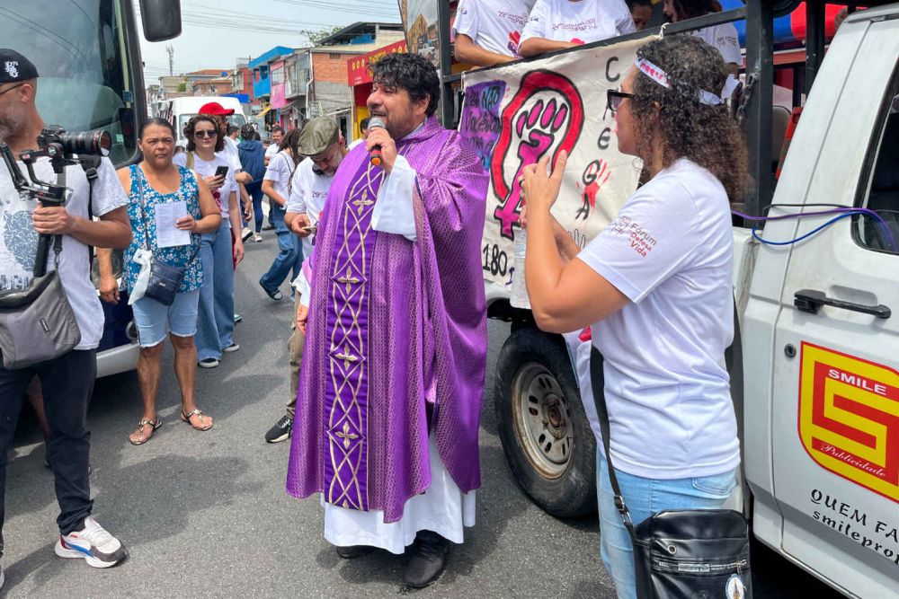 Embora organizada por católicos, a caminhada é ecumênica e recebe a adesão de grupos cristãos, movimentos estudantis, defensores de direitos humanos e líderes de religiões de matriz africana, unidos pela busca do bem comum. A pastora Ivone Santana Fernandes, da Igreja Apostólica Brasil África, no Parque Arariba, e seus fiéis sempre aderem aos movimentos e apelos em prol da sociedade. “Muita coisa conseguimos com essa união de forças, que começou com a juventude católica, e ganhou força com tantos irmãos e irmãs que, mesmo de outra fé, desejam paz, respeito e dignidade”, diz Maria Edite, que completou o trajeto com um cartaz pedindo o fim da violência. Ela destaca as palavras do Papa Francisco, que reforça que todas as religiões são um caminho para Deus.