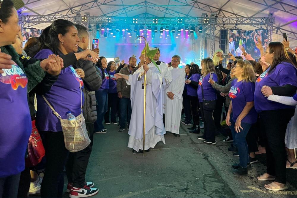 Após a missa, dom Valdir percorreu pelos espaços do evento acompanhado do padre Élcio Barros, pároco da Paróquia Nossa Senhora do Rosário. Durante o trajeto, distribuiu bênçãos e sorrisos, tirando fotos com os fiéis e reforçando a proximidade pastoral que marca seu ministério.