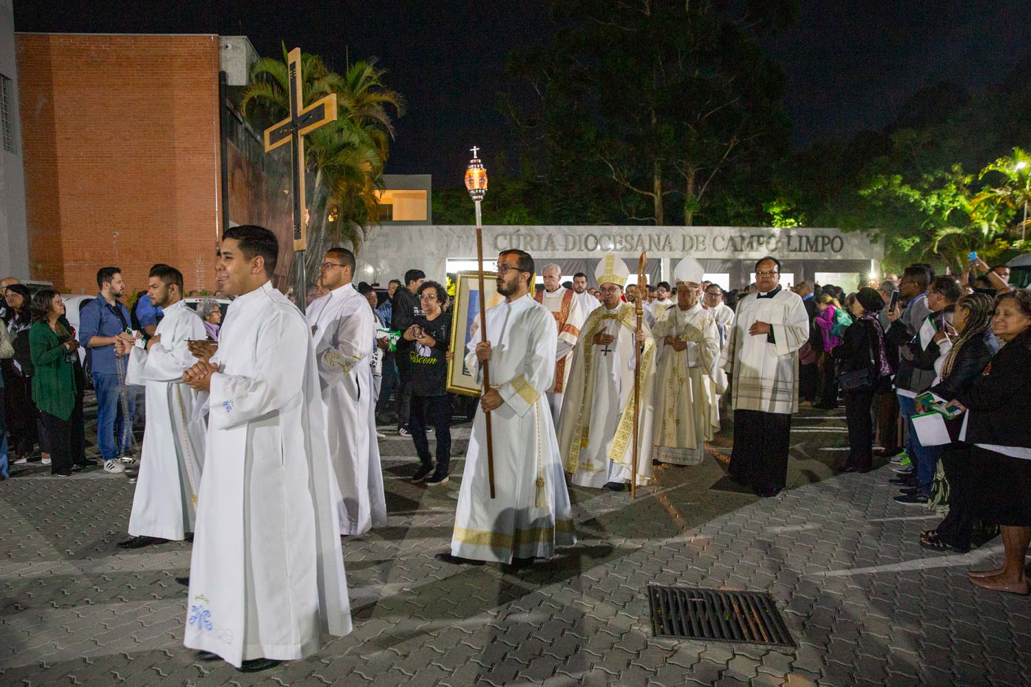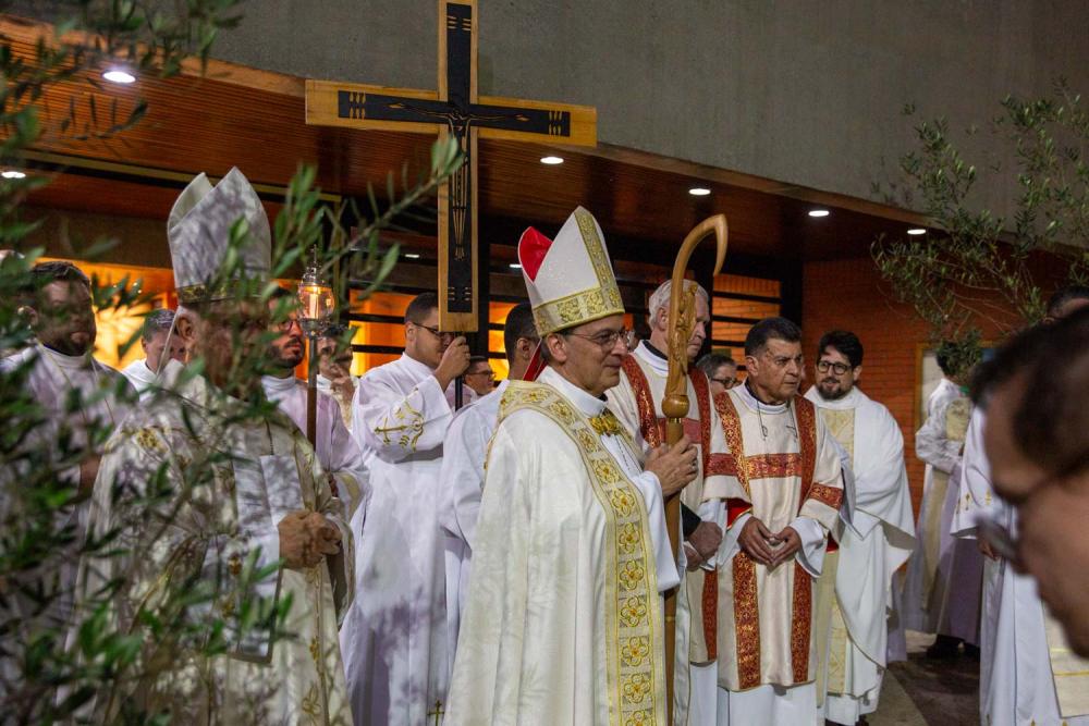 O trajeto, iniciado na Cúria Diocesana, foi marcado pelo canto dos salmos e da ladainha de todos os santos. À chegada à Catedral Sagrada Família, Dom Valdir convidou a assembleia a “entrar pela porta principal”, sublinhando o sentido comunitário e orante daquele gesto.