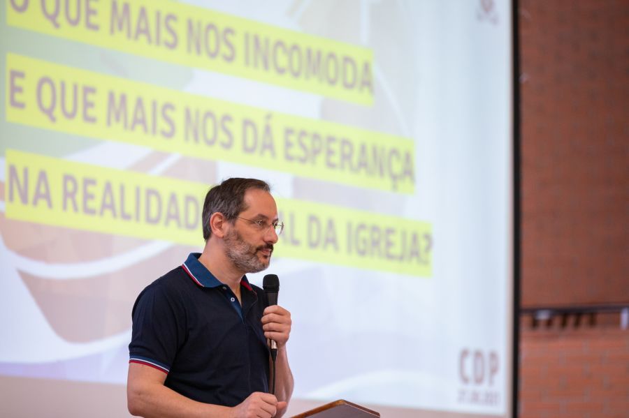 Padre Andre Vascon, pároco da paróquia São Luiz Gonzaga, da forania Mirim-Guaçu, realizou a exposição das perguntas do processo de escuta, apresentou as principais problemas encontrados nas diversas realidades da América Latina e do Caribe e motivou os participantes do conselho a reconhecer quais destas dificuldades fazem parte da realidade local.