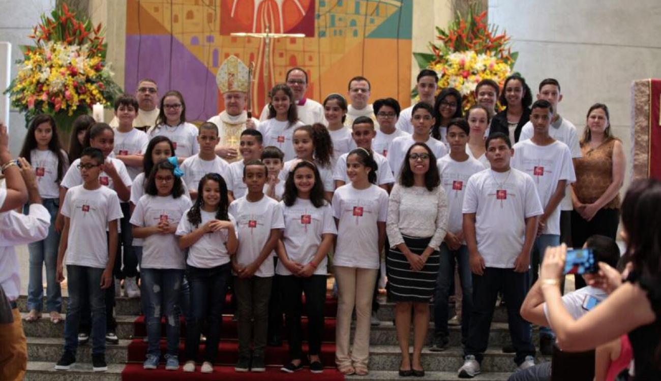 Celebrando o Cristo Ressuscitado, no Domingo de Páscoa, 01, e após dois anos de preparação, encontros e retiros, 28 crianças e adolescentes tiveram seu primeiro encontro com Jesus Eucarístico. A missa na Catedral Sagrada Família, foi celebrada por Dom Luiz Antônio Guedes e concelebrada pelo vigário paroquial, padre Rodrigo Antônio da Silva.