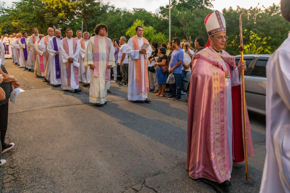 O bispo diocesano, Dom Valdir José de Castro, ssp, acolheu os peregrinos na quadra da Cáritas, onde deu início ao rito que precedeu a caminhada penitencial. A procissão foi conduzida em um espírito de contrição e esperança e simboliza a jornada espiritual dos fiéis em busca da misericórdia divina, um ato penitencial.