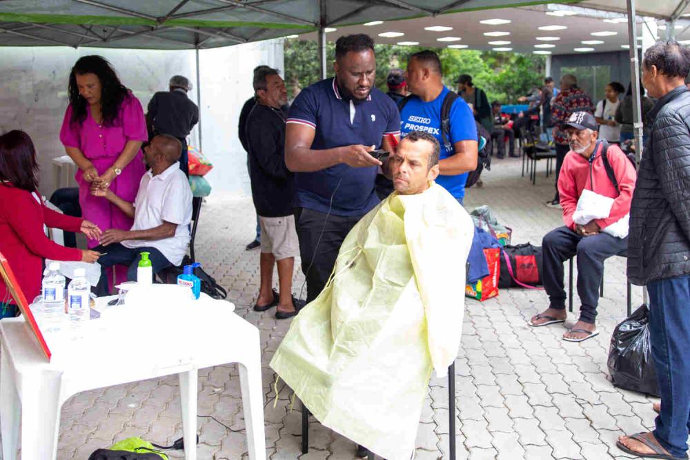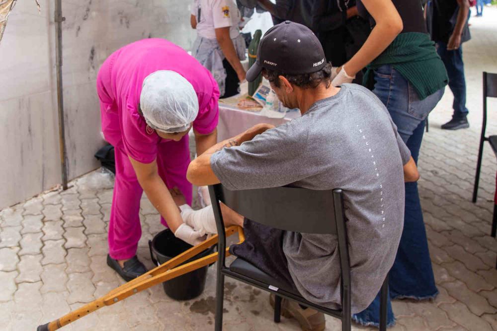 Neste ano, a ação foi realizada no pátio da Cúria Diocesana, recentemente reformado e agora equipado para receber eventos. No local, os participantes puderam contar com café da manhã e almoço, além de cuidados de higiene pessoal, como banho em contêineres com chuveiros, corte de cabelo, cuidados com unhas e atividades recreativas para as crianças. A Pastoral da Escuta esteve presente durante todo o dia, oferecendo acolhimento e apoio, juntamente com atendimentos básicos de saúde, como curativos e orientações.