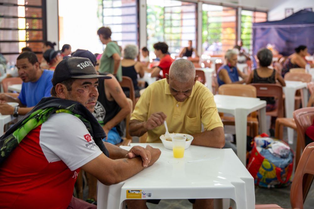 R.T., um senhor de 69 anos, segurando o panfleto distribuído pelos voluntários, expressou sua gratidão pelo convite: "A pessoa que me abordou disse que eu poderia vir e que até tomar um banho seria possível. Já tem uma semana que não consigo tomar banho".