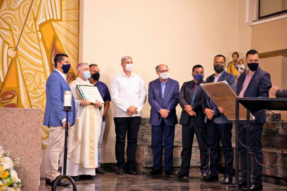 O pároco do Santuário, Padre Alberto Gambarini, com a animação que lhe é peculiar, agradeceu no início da celebração a presença dos fieis, dos clérigos e religiosos presentes e das autoridades políticas que prestigiaram esta homenagem, entre eles, o presidente da Câmara, Val Santos e do ex-governador de São Paulo, Geraldo Alckmin, que estava acompanhado da sua esposa Lu Alckmin.