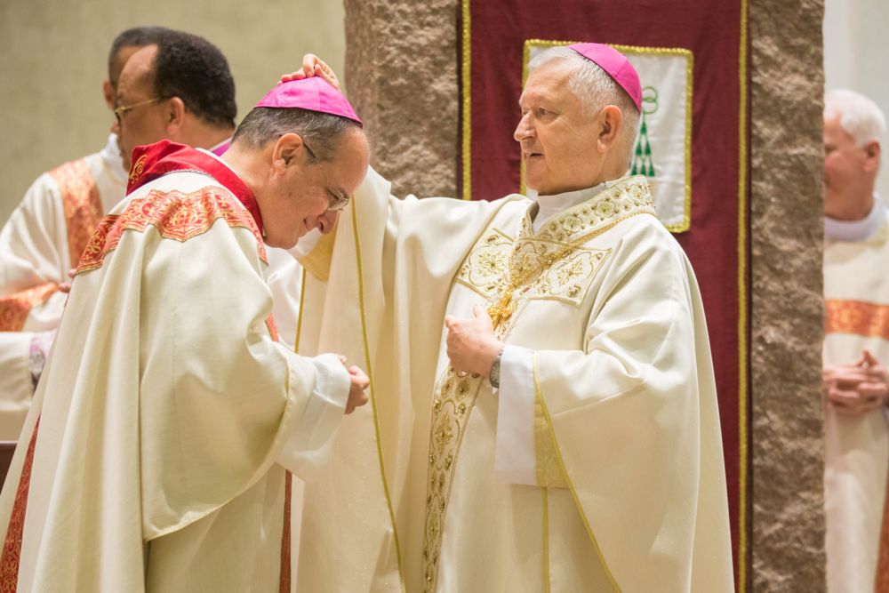 Depois dos ritos iniciais, Dom Luiz, saudando todos os presentes, ofertou ao Monsenhor Valdir duas insígnias: a cruz peitoral e o solidéu. A partir da nomeação para o episcopado, estas insígnias já podem ser utilizadas pelo eleito. Segundo a tradição católica, os objetos passam a identificar o eleito como bispo até que ele seja ordenado. A ordenação do Mons. Valdir está marcada para o dia 26 de novembro, às 16h, na Catedral Sagrada Família.