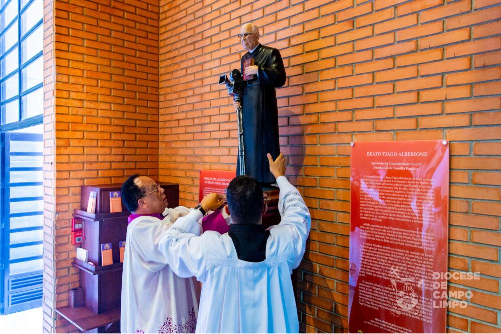 A imagem, cuidadosamente confeccionada por uma empresa especializada em imagens sacras, ocupou um lugar de destaque na Capela da Catedral. Com um metro, a escultura não apenas representa visualmente o Bem-aventurado Tiago Alberione, fundador dos Paulinos, mas esta, especificamente, carrega consigo uma relíquia de primeiro grau, adicionando um toque sagrado à veneração.