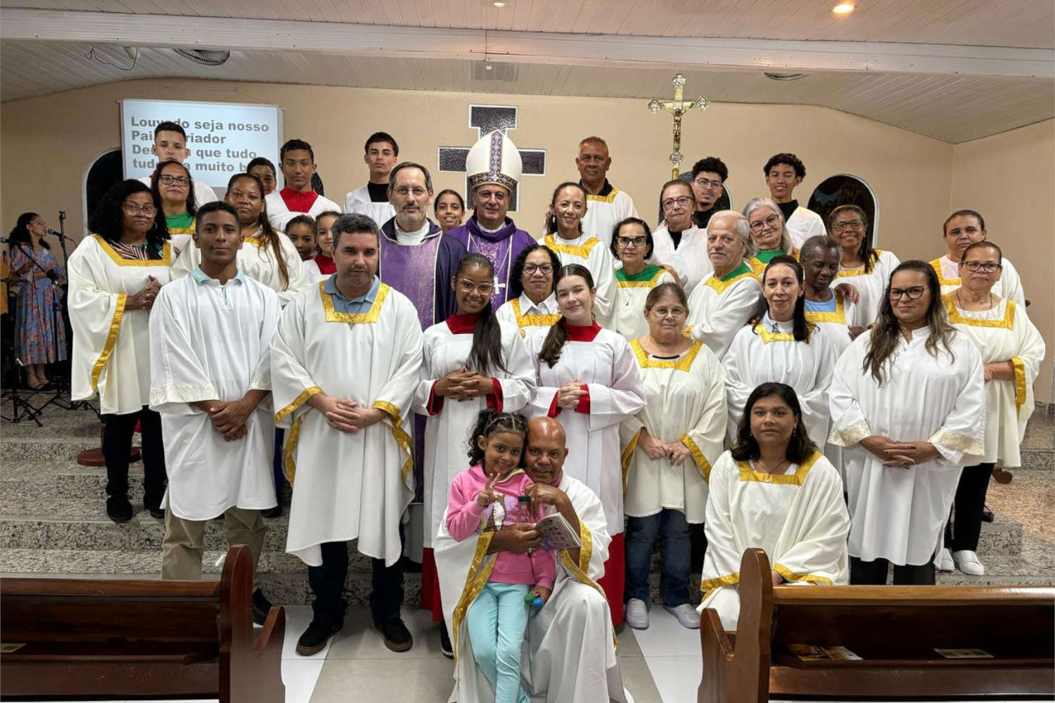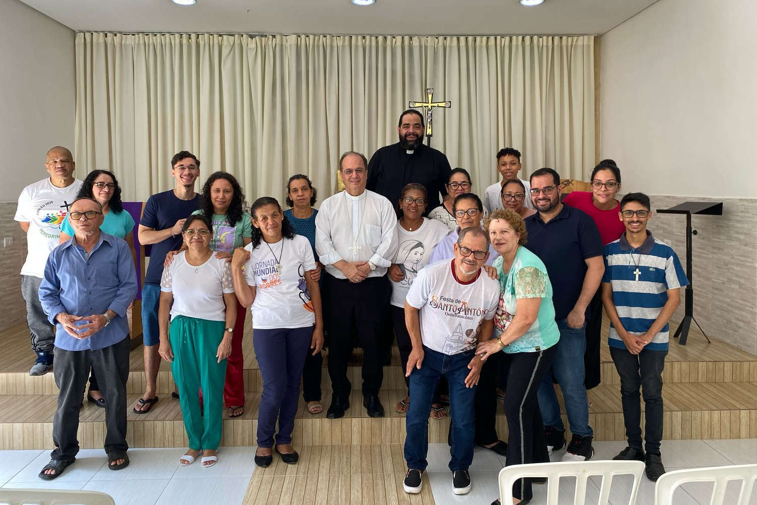 O dia foi encerrado com a Santa Missa na matriz paroquial, que reuniu um grande número de fiéis. Após a celebração, um encontro formativo com as lideranças proporcionou momentos de aprendizado e proximidade, culminando em um momento fraterno ao redor da mesa.