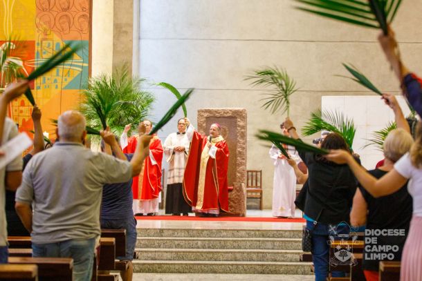 A comunidade católica da Paróquia Catedral Sagrada Família deu início à Semana Santa com a solene celebração litúrgica do Domingo de Ramos, no dia 24 de março, com uma grande participação de fiéis. Presidiu a eucaristia Dom Valdir José de Castro, ssp, que, como de costume, na entrada do Centro Pastoral, exortou os fiéis a participarem da procissão com os ramos abençoados, recordando a entrada de Cristo em Jerusalém. A procissão percorreu um curto trajeto pelas ruas próximas à catedral, sendo auxiliada por um carro de som com cantos animados, onde todos entoaram: "Hosana ao filho de Davi!"