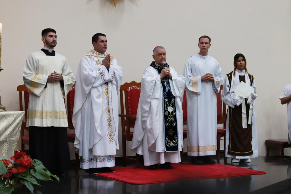 No início da Celebração Eucarística, Frei André acolheu a todos os presentes, tanto paroquianos (da Matriz e das Comunidades São Francisco de Paula e São Pedro e São Judas, que compõem a paróquia) quanto devotos vindos de diferentes regiões da diocese. “Acolhemos também o nosso Bispo Emérito, Dom Luiz, que nos dá o carinho de sua presença nesta noite”, completou o pároco, criando, assim, um ambiente propício à oração.