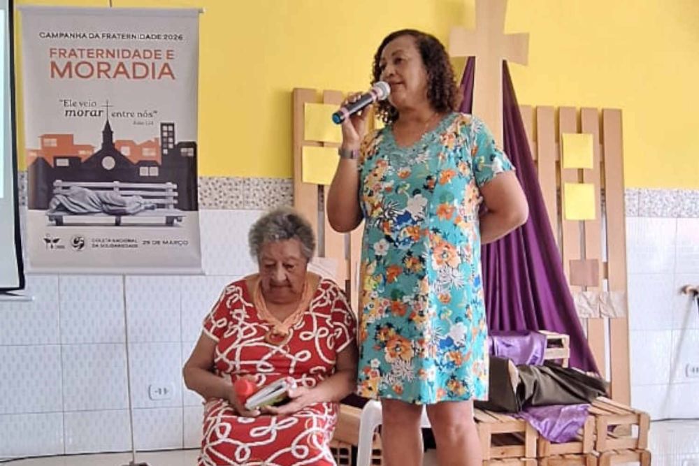 Samantha Freitas, da Pastoral Fé e Política, destacou a importância da participação social e política de leigas e leigos, apresentando exemplos de como as decisões políticas impactam a vida cotidiana, especialmente no que se refere ao direito à moradia digna. A reflexão foi iluminada por trechos da Doutrina Social da Igreja e do Catecismo, além de dados sobre moradia precária e população em situação de rua extraídos do Texto-Base da Campanha.