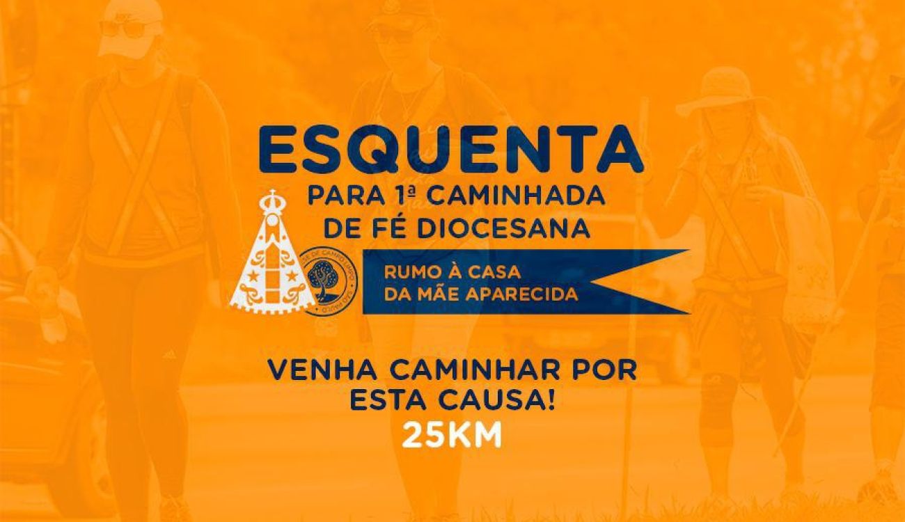 No dia 12 de outubro, consagrado a Nossa Senhora Aparecida, Padroeira do Brasil, iremos ao encontro da Mãe, em um momento novo de fé e espiritualidade da nossa diocese. Estamos em contagem regressiva para nossa 1ª Caminhada de Fé Diocesana e já que o assunto é peregrinar, convidamos todos para que no próximo feriado (dia 7 de Setembro) façamos nosso “Esquenta para Aparecida”. São bem-vindas pessoas de todas as idades que desejarem caminhar conosco neste dia, será um pequeno trajeto, um “aperitivo” da experiência que teremos em outubro.