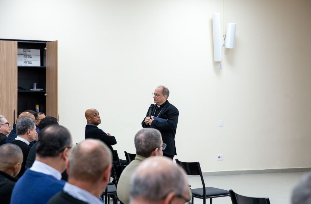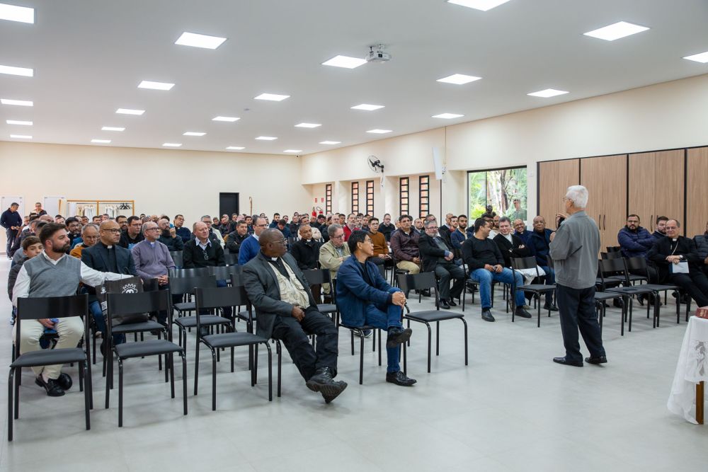 Em seguida, no Auditório São Paulo Apóstolo, o cônego Celso Pedro conduziu uma palestra formativa sobre a esperança à luz do ministério presbiteral, tema central do Ano Jubilar. O palestrante, biblista renomado, foi professor de muitos dos presentes e tem uma longa trajetória no ensino teológico e na animação pastoral da Igreja no Brasil.