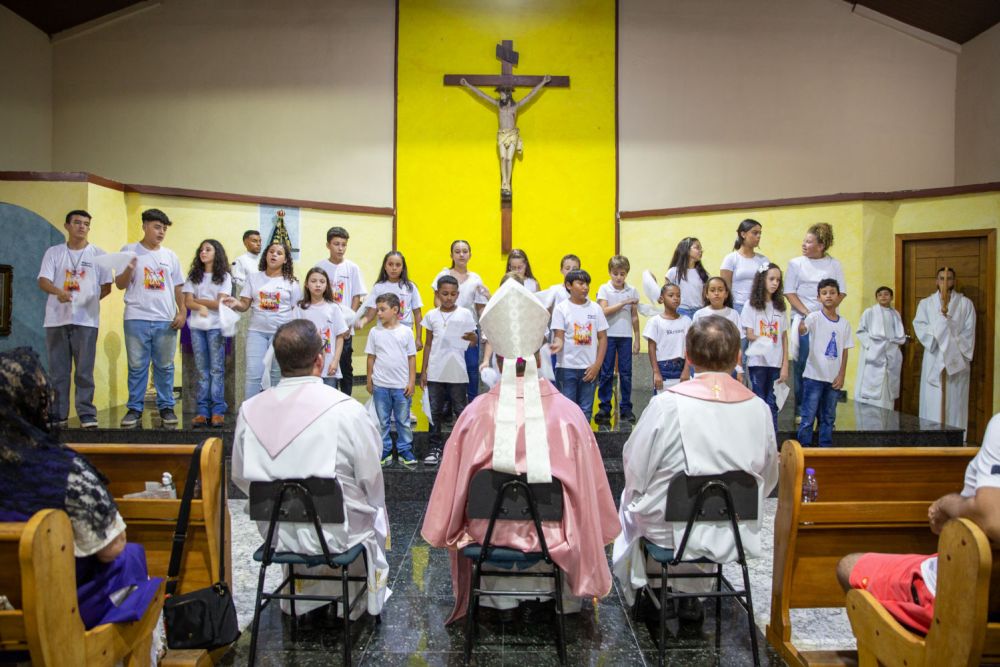 A celebração, inicialmente marcada para as 17 horas, teve início por volta das 18 horas, e contou com a participação de uma grande quantidade de fiéis, ansiosos por estar próximos do bispo. Um clima agradável e familiar permeou a celebração, que teve um grandioso encerramento com uma apresentação musical das crianças da comunidade para todos os presentes, incluindo uma criança tocando uma canção mariana com flauta doce.