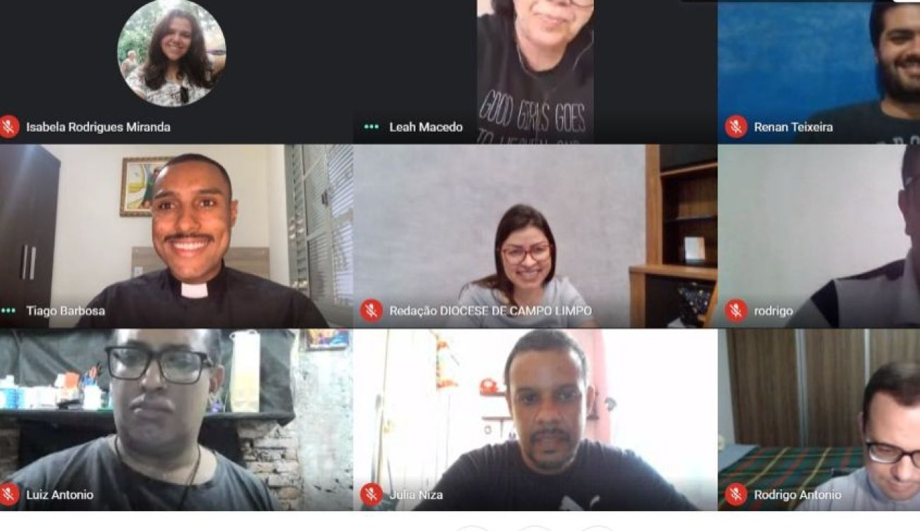 Padre Tiago Barbosa, Assessor Eclesiástico da Pascom Sul 1, ‘visita de forma remota’ a Diocese de Campo Limpo em tarde de estudo sobre a Carta do Santo Padre para o 55º Dia Mundial das Comunicações.