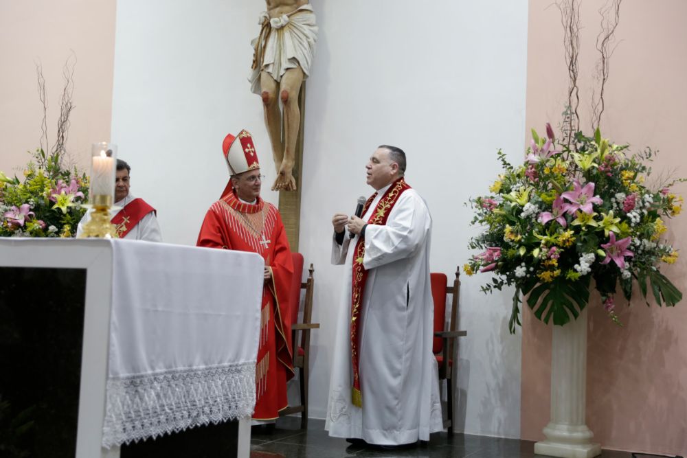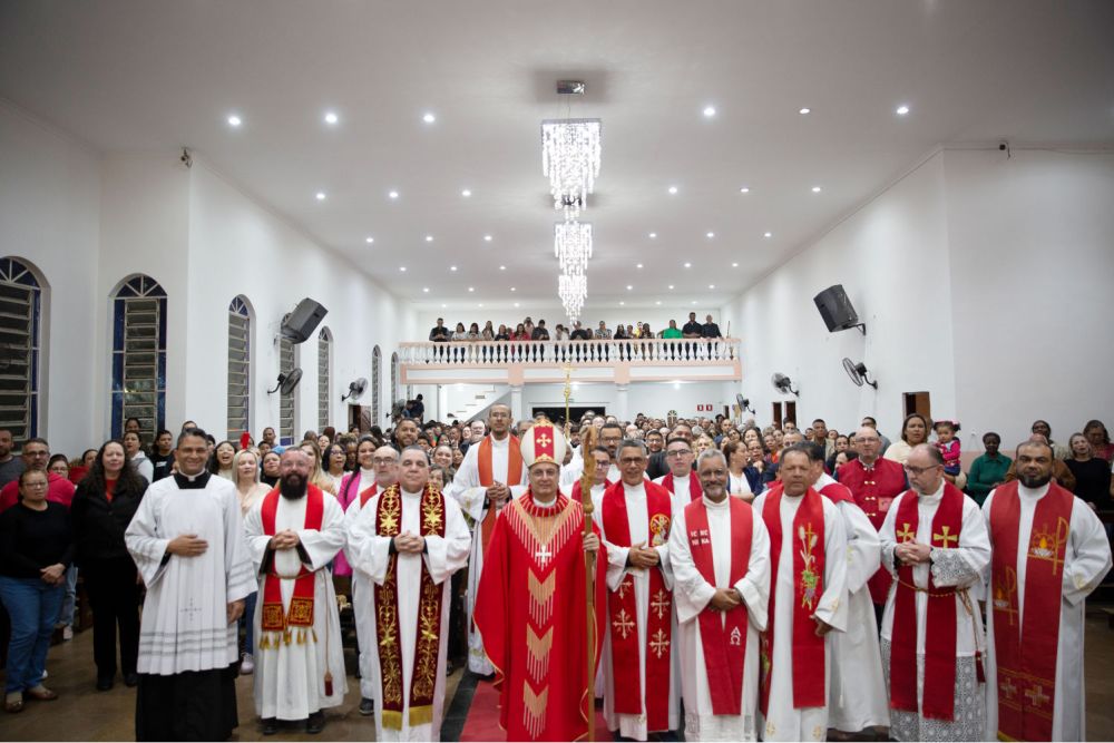 A Santa Missa começou pontualmente às 20 horas e marcou o início da Visita Pastoral de Dom Valdir a quatro paróquias da forania. Os párocos, vigários e diácono presentes fizeram uma bonita e volumosa procissão de entrada. Dom Valdir José de Castro, bispo diocesano, presidiu a celebração e a organização da liturgia ficou a cargo das paróquias que compõem a forania.