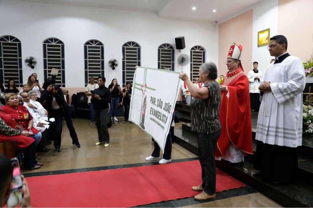 Durante o ofertório, toda a forania foi representada pelas bandeiras e estandartes das 13 paróquias que fazem parte desta porção do povo de Deus. Dom Valdir foi homenageado em mensagem, cujo conteúdo reafirmou que caminhar juntos como povo de Deus garante a certeza de que ninguém está só e que o banquete da vida é para todos.
