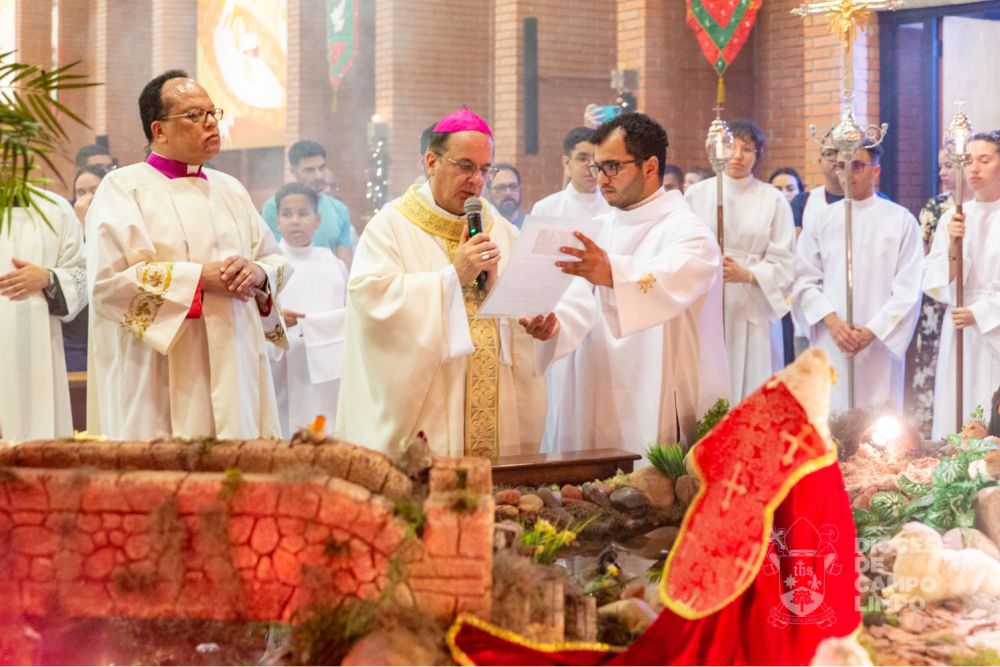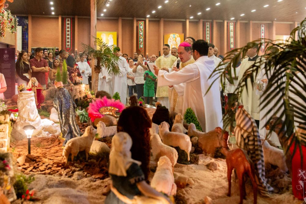 Antes da benção final, Dom Valdir, acompanhado dos concelebrantes, abençoou o presépio e introduziu a imagem do Menino Jesus na manjedoura. Ele enfatizou a importância de contemplar todo o cenário do nascimento do Salvador na gruta de Belém, incentivando a compreensão de que o Deus-Menino veio ao mundo para saciar diversas necessidades.