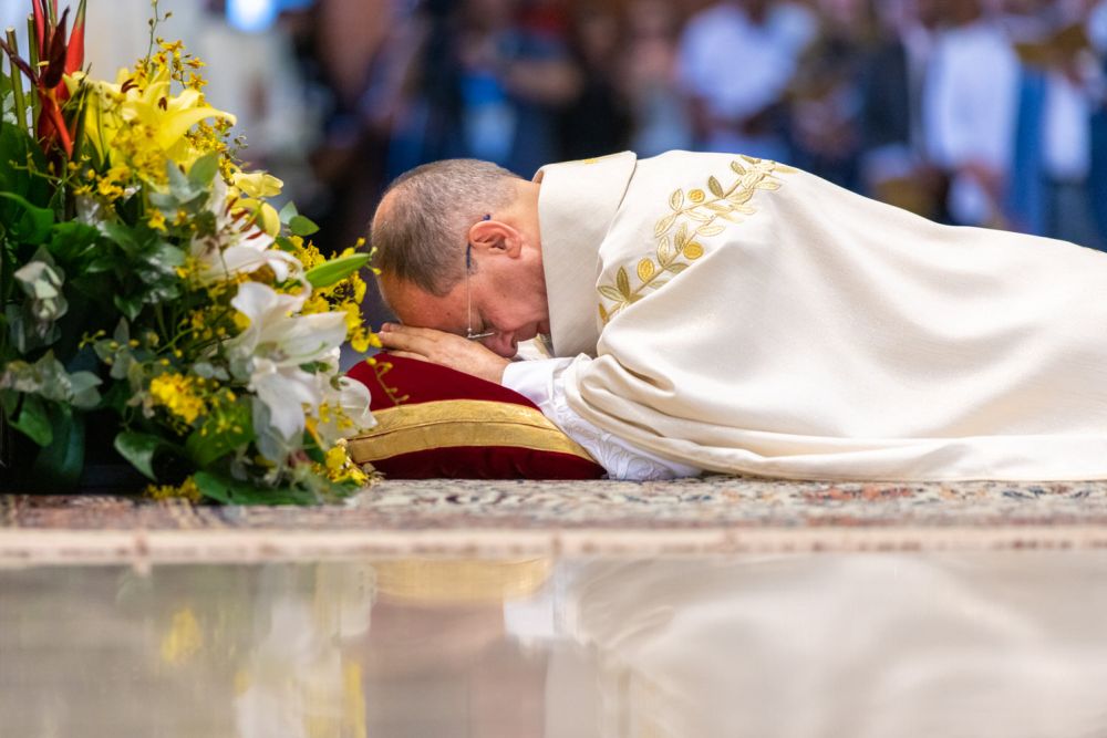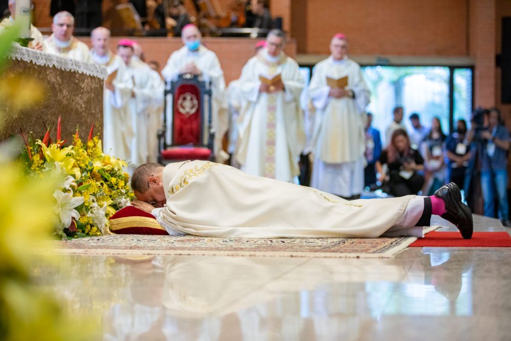 São muitos os momentos marcantes e de emoção durante o rito de ordenação, entre eles o momento em que o eleito se prostra diante do altar enquanto toda a assembleia invoca a intercessão dos santos.