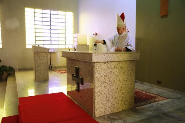 Neste momento aconteceu também a iluminação do altar com as velas, a ornamentação com flores; foram acesas as luzes de toda a igreja. A claridade da vela recorda que Cristo é a “luz para se revelar as nações”, cuja luminosidade resplandece a Igreja e por ela toda a família. Após todo o rito, o bispo prosseguiu com a liturgia eucarística.