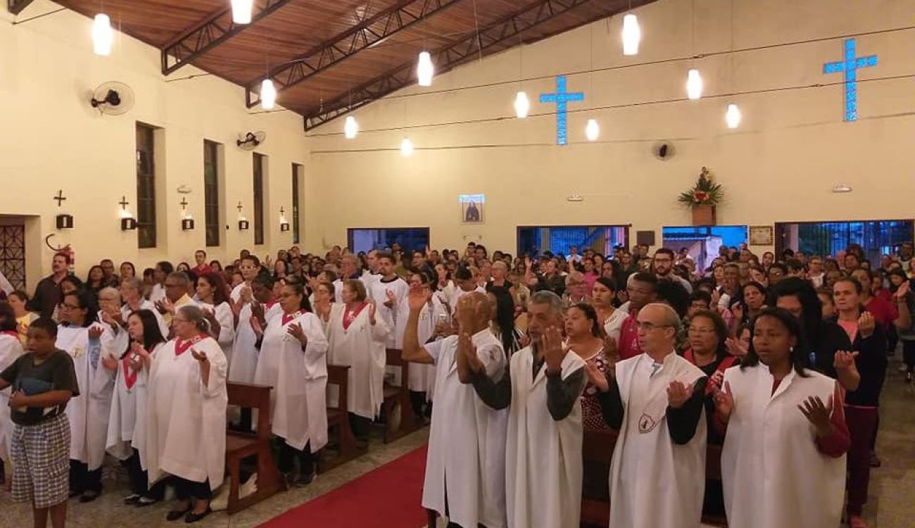 Ao entardecer, entre o azul do dia e o escuro da noite, teve início a procissão pelas ruas no território paroquial com a imagem do Senhor dos Passos, em seguida, a Missa Solene presidida pelo pároco, Pe. Denis de Oliveira Matos e logo depois, um delicioso coquetel compartilhado.