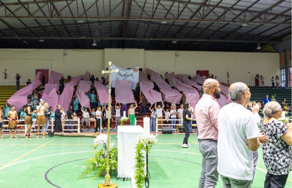 Antes da bênção final, e celebrando os 230 anos da paróquia, uma encenação apresentou a história da paróquia-mãe da cidade, relembrando as raízes da fé em Embu das Artes e ligando passado e presente numa mesma caminhada de evangelização.