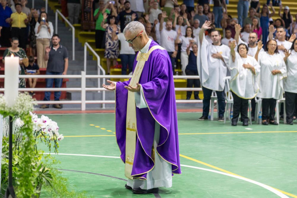 Já sem as vestes litúrgicas, padre Elcio foi chamado ao centro da quadra. O silêncio deu lugar ao ritmo contagiante da bateria da Escola de Samba Gaviões da Fiel. Conhecido pelo amor declarado ao Corinthians, o sacerdote entrou na festa com o mesmo entusiasmo que marca sua vida pastoral. Entre sorrisos, música e aplausos, a celebração se prolongou por mais de uma hora, encerrando o jubileu com a alegria de quem compreende que servir a Deus também é celebrar a vida com o povo.