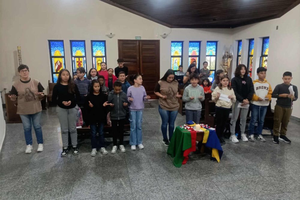 A atividade culminou em um momento de espiritualidade conduzido por Julia e pelas catequistas Neide e Rosemary. As turmas reunidas rezaram uma dezena do Terço, meditando e direcionando suas intenções para as missões globais e para os desafios enfrentados pelas crianças ao redor do mundo. Antes do sorteio dos rosários, Julia apresentou aos catequizandos a campanha missionária de 2024, inspirada pelo tema “Ide, convidai a todos para o banquete”, do Evangelho de São Mateus 22,9, destacando o convite universal ao amor e à solidariedade.