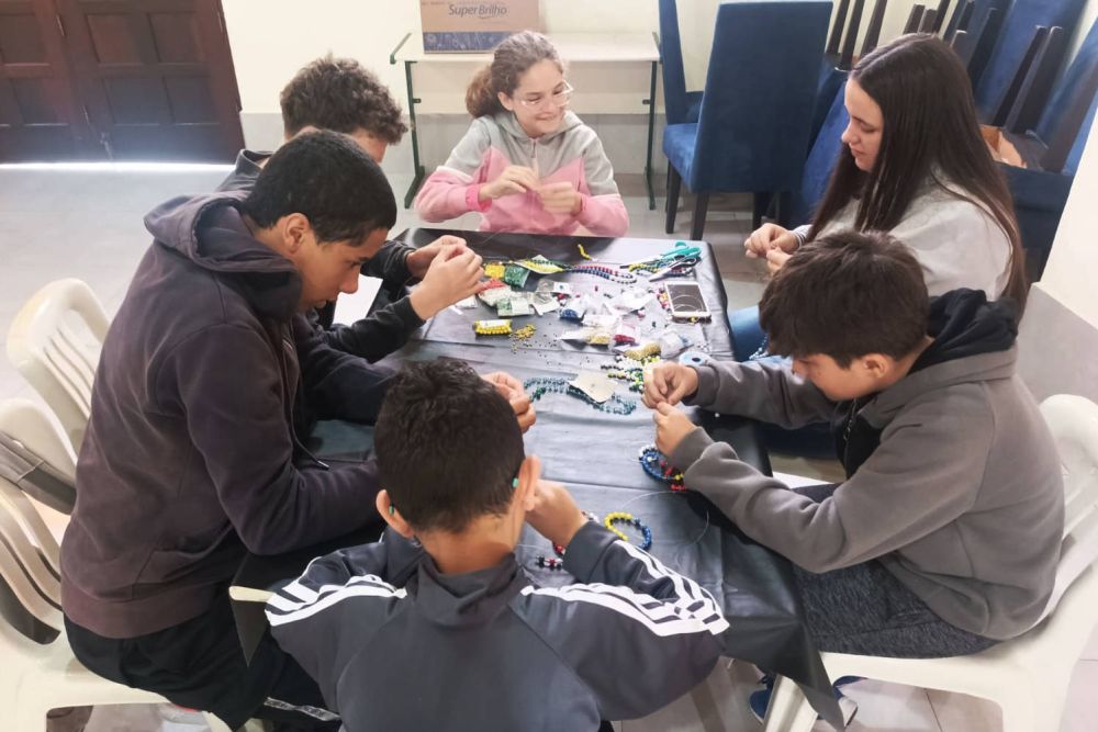 Cada integrante da turma de Perseverança montou dois rosários, guardando um como lembrança e destinando o outro para ser sorteado entre os catequizandos da turma infantil. Na semana seguinte, os rosários foram distribuídos entre as crianças que se preparam para a Primeira Comunhão Eucarística, incentivando-as a lembrar das intenções e orações pelas pessoas de cada continente e pelas cinco comunidades que compõem a paróquia.