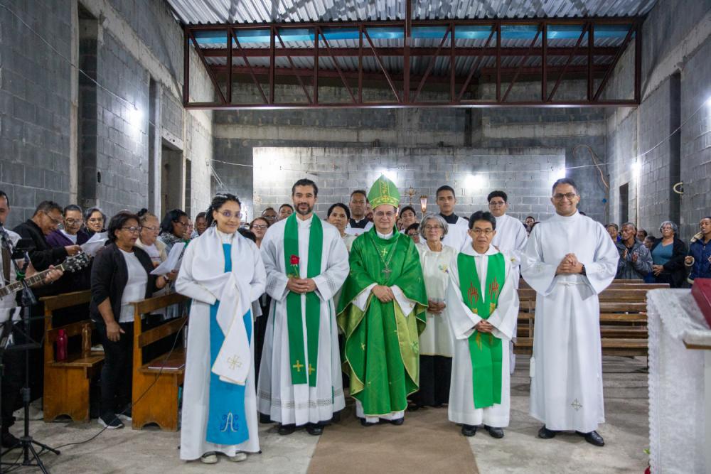 Nesta quinta-feira, 28, a Comunidade Santa Teresinha do Menino Jesus, que pertence a Paróquia Santo Antônio, forania São José, deu início ao tríduo em honra à sua padroeira com uma solene celebração eucarística. A missa foi presidida pelo Bispo Diocesano, Dom Valdir José de Castro, ssp, que esteve pela primeira vez no território paroquial. O pároco Reinaldo Sussumu Akagui e o vigário Padre Robson José da Silva deram as boas-vindas e concelebraram a liturgia.