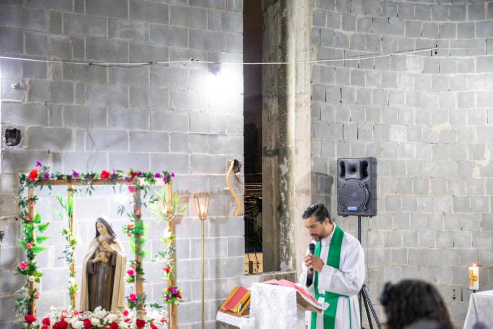 A Comunidade Santa Teresinha é a mais antiga da Paróquia Santo Antônio, que tem outras seis comunidades e atualmente, o novo lugar onde acontecem as celebrações está em construção. Toda a parte estrutural, paredes e cobertura já estão prontas. A coordenadora da comunidade, Fátima Rosa, está animada e falou sobre as arredações feitas em prol da edificação da comunidade: “Sempre estamos pensando em alguma coisa para que a arrecadação não cesse, estamos pedindo que os membros e outros que queiram ajudar para que ‘apadrinhem’ Santa Terezinha oferecendo algo que seja de utilidade para a pessoa ou família. Também estamos vendendo fogazzas depois das celebrações e claro, a comunidade unida está tocando a obra”.
