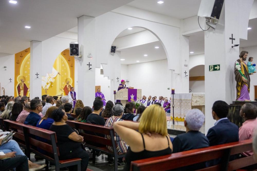 A Santa Missa começou pontualmente às 19 horas, párocos, vigários e diáconos fizeram uma bonita e volumosa procissão de entrada. Esteve presente também, padre Marcos Joaquim Patrício, Coordenador de Pastoral. A organização da liturgia da celebração foi dividida entre as paróquias que compõem a forania e Dom Valdir José de Castro, bispo diocesano, presidiu a celebração.