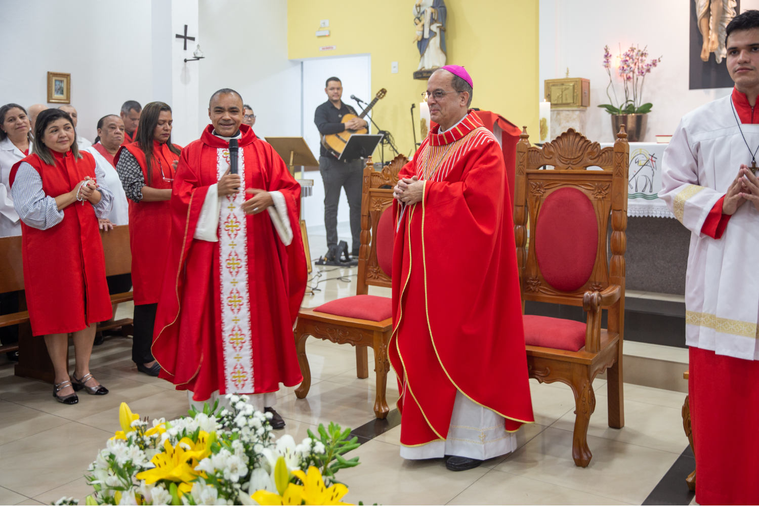 Após a comunhão, o grupo de jovens da paróquia apresentou uma encenação sobre a conversão de São Mateus, destacando a transformação de vida ao seguir Jesus e o compromisso com o Evangelho. O encerramento da celebração foi marcado por palavras de agradecimento do padre José Marcos à presença de Dom Valdir, seguido de uma calorosa salva de palmas por parte da comunidade, demonstrando seu entusiasmo e gratidão.