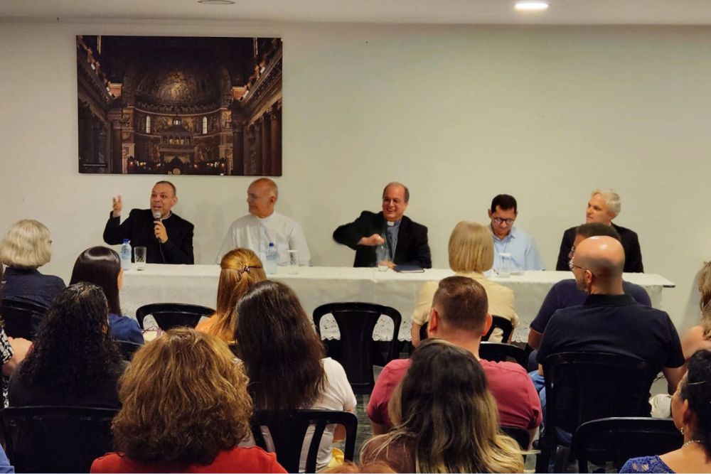 Às 16h, a Paróquia São Pedro e São Paulo acolheu a assembleia interparoquial, reunindo fiéis das três paróquias. O salão cheio evidenciou o interesse dos leigos e leigas em escutar Dom Valdir sobre os caminhos da diocese, à luz dos eixos da comunhão, participação e missão, pilares do Sínodo sobre a Sinodalidade. O bispo partilhou também aspectos de sua nomeação episcopal e dos três anos à frente da Diocese de Campo Limpo, ouvindo sugestões, críticas e contribuições dos participantes.