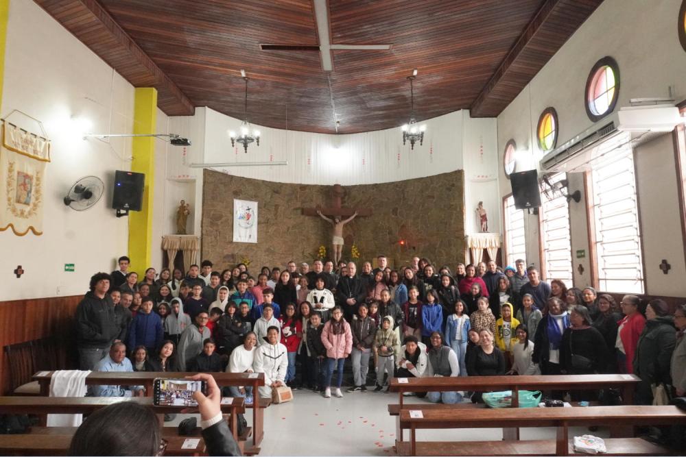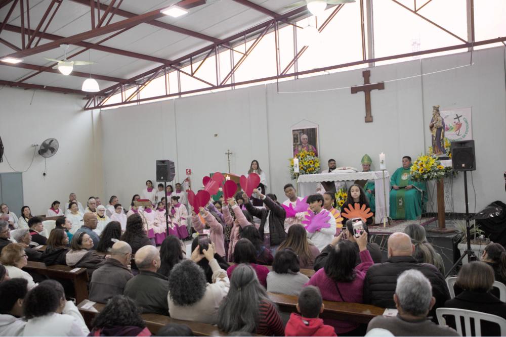 No domingo, 10, a visita prosseguiu na paróquia Maria Mãe da Igreja, acolhida com alegria pelos paroquianos. Logo cedo, crianças da catequese receberam o bispo com a oração do terço. A missa das 10h, celebrada no salão paroquial, reuniu numeroso público.