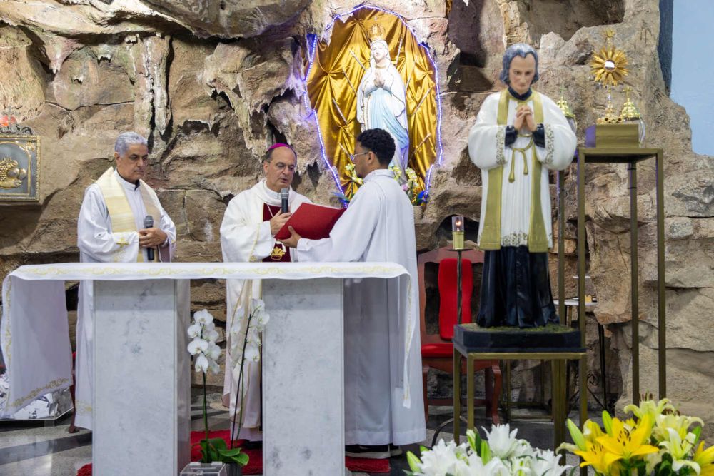 Um expressivo número de fiéis das cinco comunidades que compõem a paróquia — Nossa Senhora de Lourdes, Nossa Senhora do Perpétuo Socorro, São José Operário, Santa Helena e Jesus Bom Pastor — reuniu-se na igreja matriz para celebrar e acolher a visita de Dom Valdir com alegria. A missa votiva, realizada mensalmente, marcou um momento especial na preparação para o centenário da canonização de São João Maria Vianney, que foi declarado santo pelo Papa Pio XI em 31 de maio de 1925. Sua vida continua a ser uma inspiração para toda a comunidade.