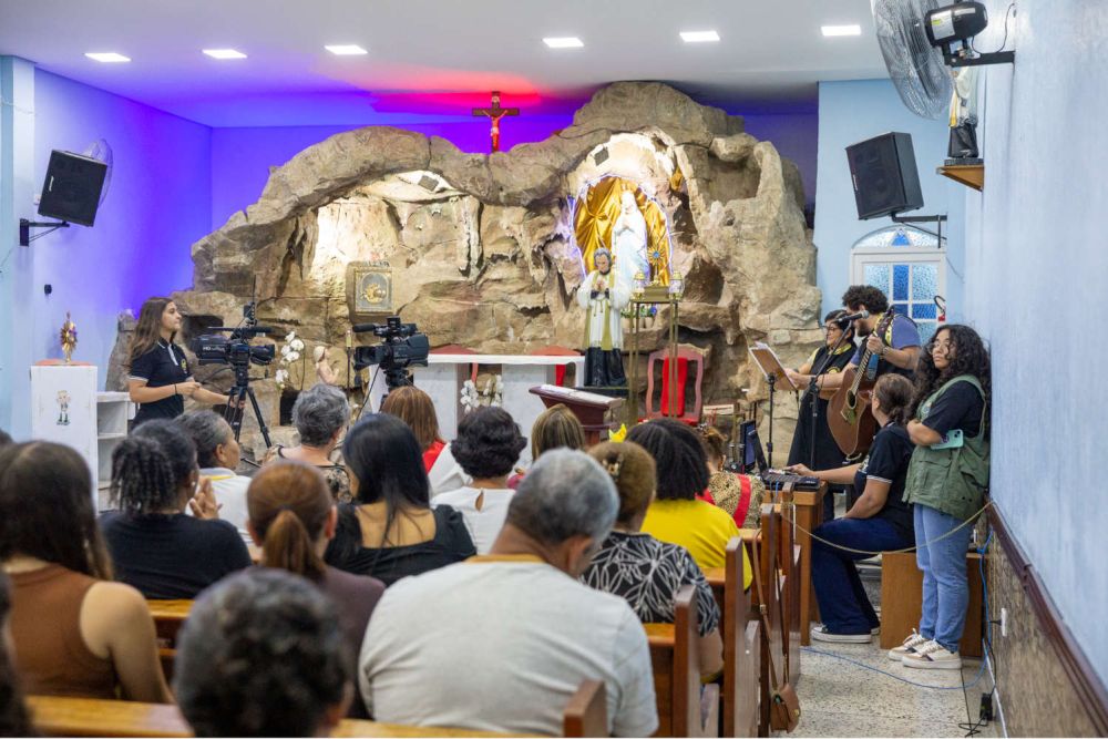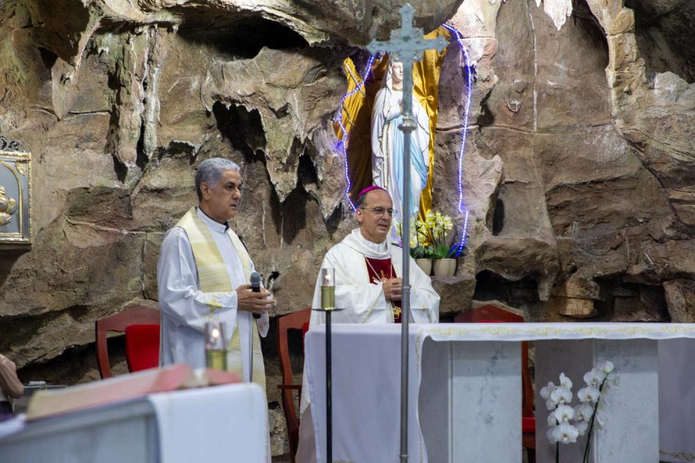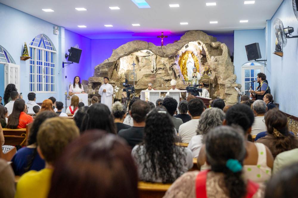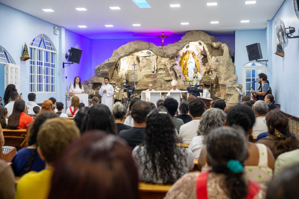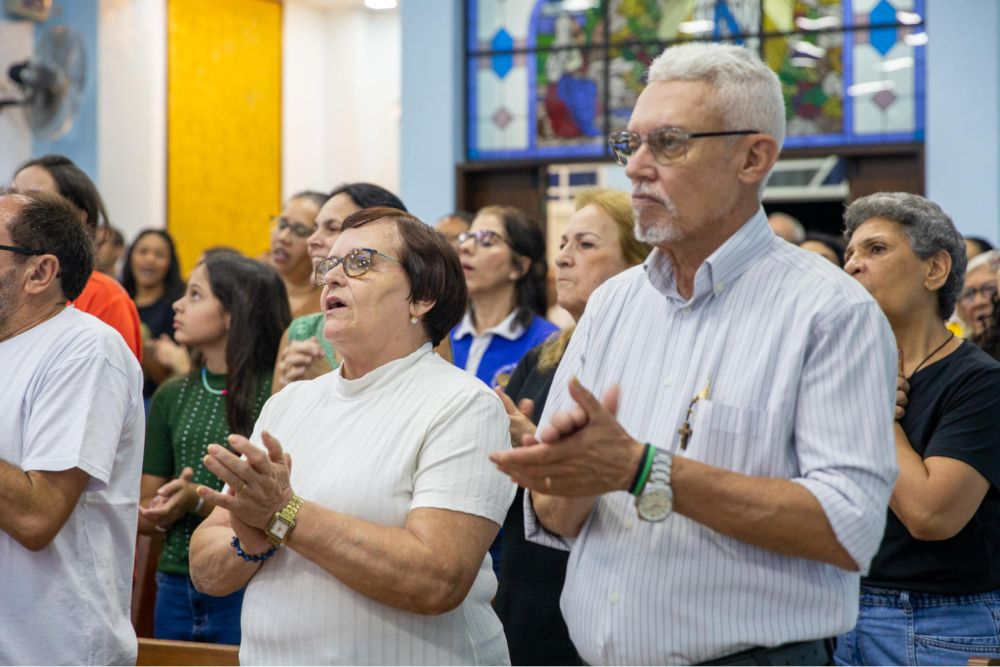 Em sintonia com o Ano Santo, a paróquia entoou com entusiasmo o hino do Jubileu 2025 no canto de entrada. No início da celebração, o pároco expressou sua gratidão pela presença do bispo, que foi saudado com uma calorosa salva de palmas.