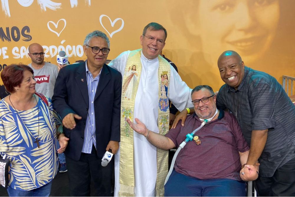 Um dos convidados mais esperados era o padre Marlon Múcio, que subiu ao palco por volta das 10 horas. Com uma doença genética rara que atinge 1 a cada 1 milhão de pessoas, o padre ganhou atenção por suas palavras voltadas às adversidades da vida.