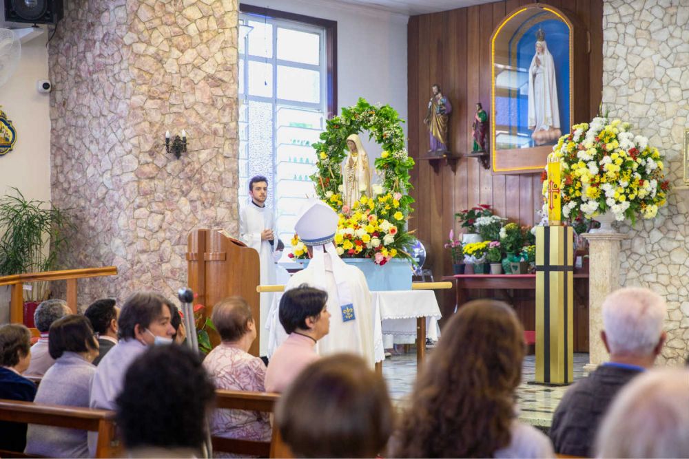 No dia em que a Igreja celebrou a memória de Nossa Senhora de Fátima, 13, a paróquia, da forania Morumbi, que tem como padroeira a Virgem, recebeu para presidir a Santa Missa das 15 horas o bispo diocesano, Dom Valdir José de Castro, ssp. Concelebraram o pároco, padre Darci Bortolini e o padre Maurício Ricardo Lourenço e o cerimoniário padre Sandro Ely de Oliveira.