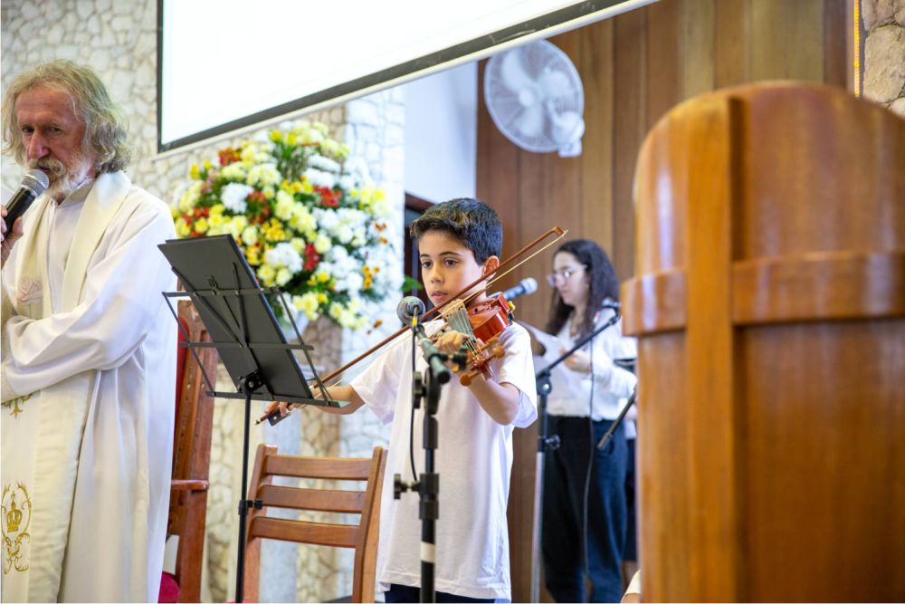 Entre as homenagens a Virgem de Fátima, antes da oração final, Gustavo de Sousa Nery, de 8 anos, que desde muito pequeno se interessou por músicas e instrumentos de corda, tocou no violino uma canção a Nossa Senhora composta pelo padre Darci, emocionando a todos. Gustavo já mostrou seu talento à comunidade em outras três solenidades.